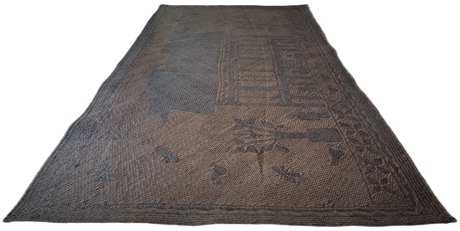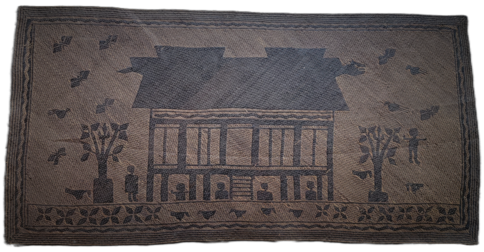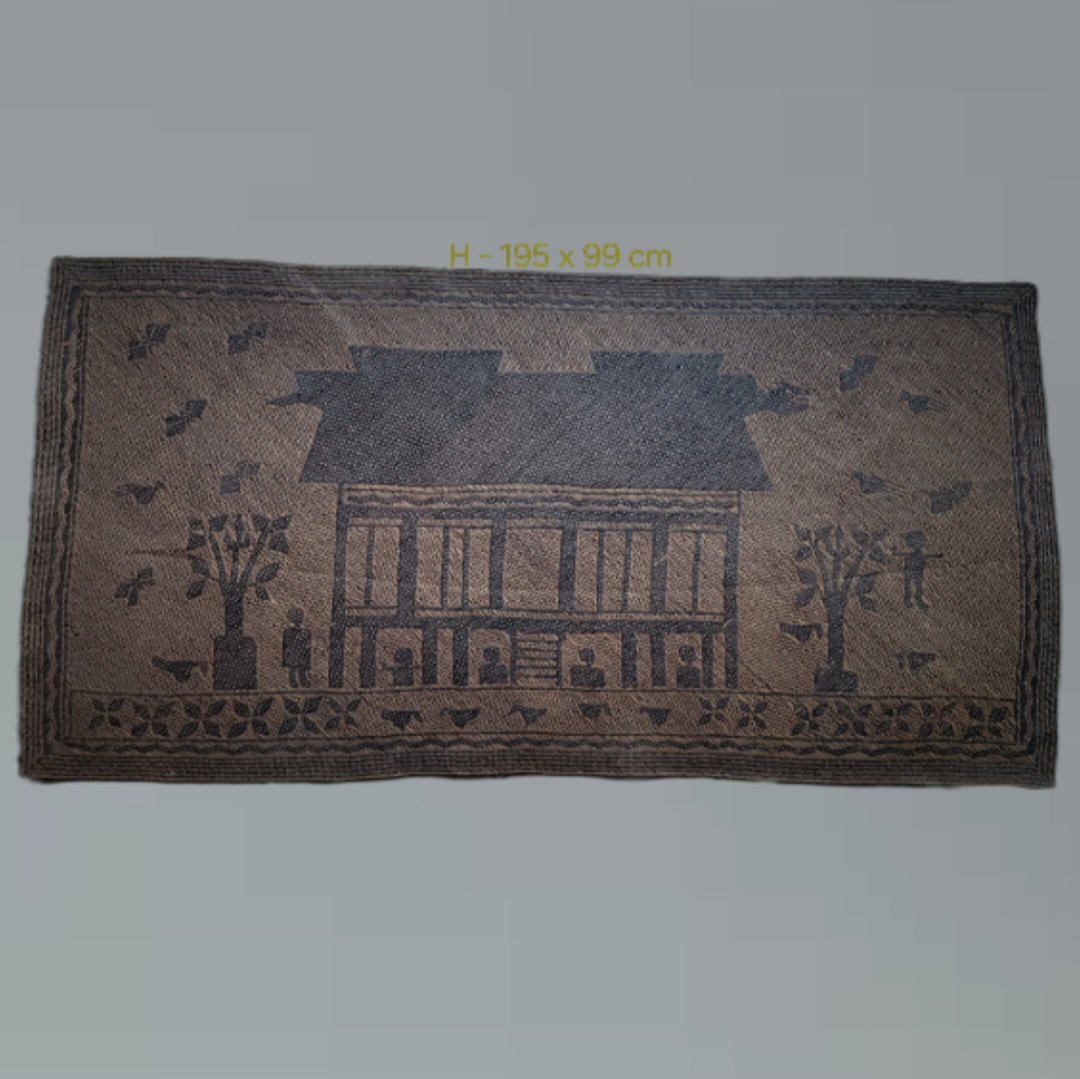 Narrative architectural mats of this scale and iconographic clarity are exceedingly rare, particularly in intact condition. Most surviving Ngaju mats are fragmentary or lack representational imagery, making this example of exceptional ethnographic and collectible importance.