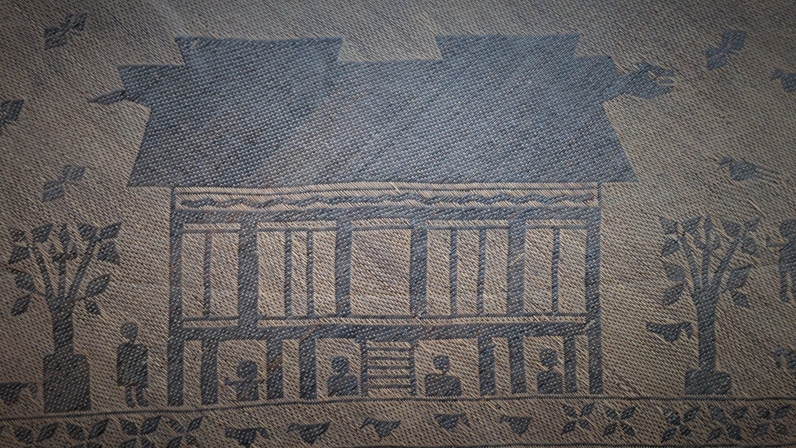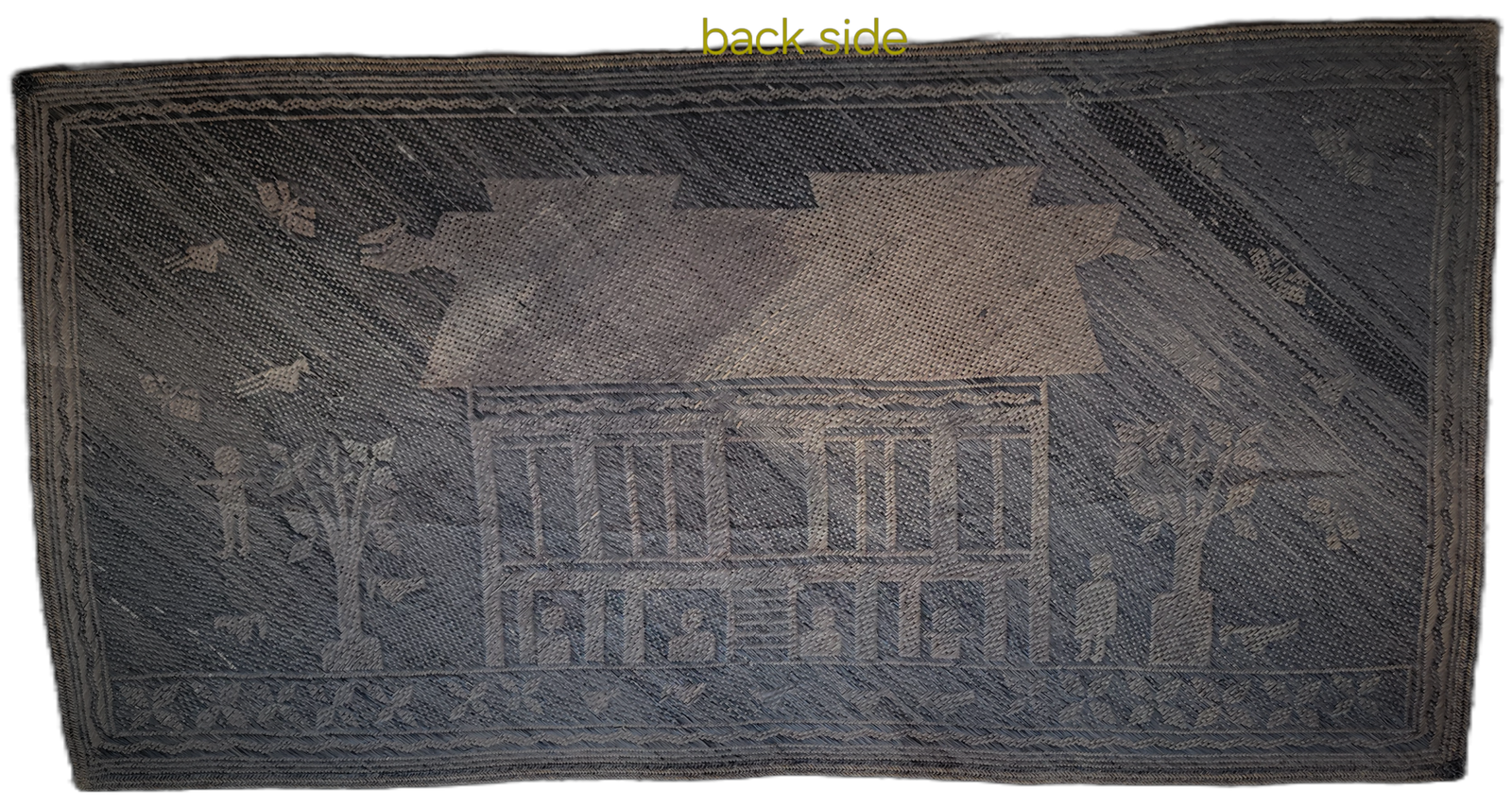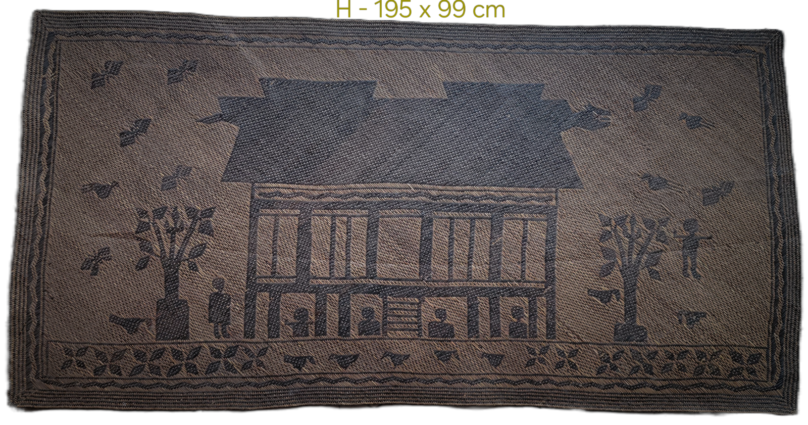 Narrative architectural mats of this scale and iconographic clarity are exceedingly rare, particularly in intact condition. Most surviving Ngaju mats are fragmentary or lack representational imagery, making this example of exceptional ethnographic and collectible importance.