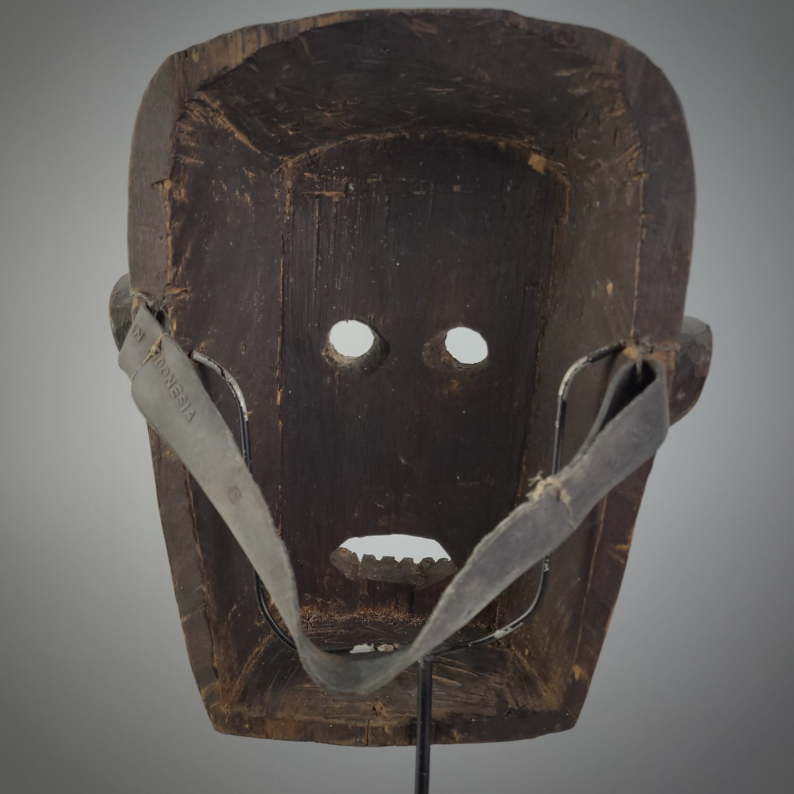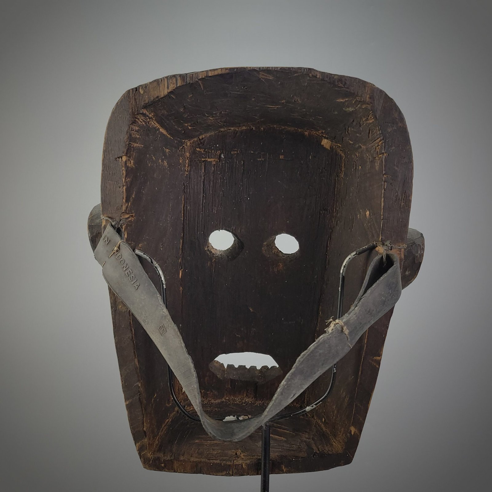 This powerful ceremonial mask originates from the Bidayuh community of Mandor, Landak Regency, West Kalimantan. It represents a classic Bidayuh shamanic dance mask, carved in a bold and archaic style that reflects the pre-Christian spiritual cosmology of the Bidayuh people.